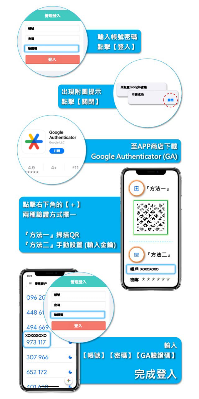 步驟三 : 確認app綁定後 關閉目前視窗 app內顯示驗證碼 輸入驗證碼欄位內